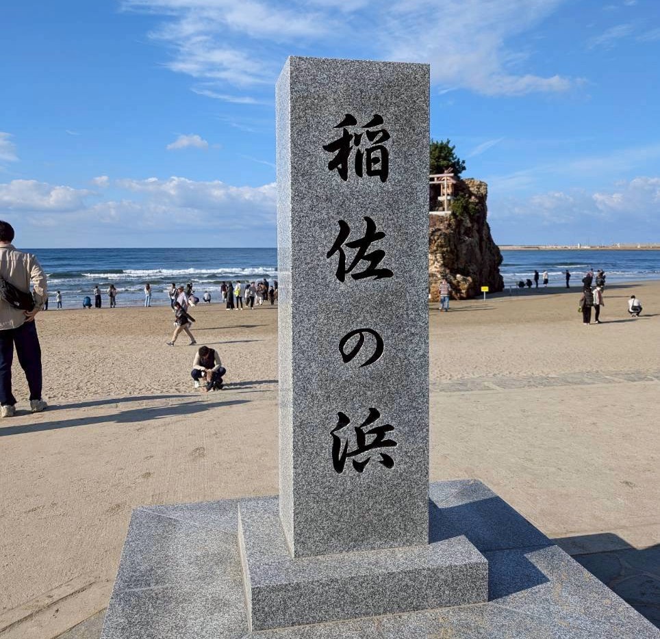 まず、日本海に臨む「稲佐の浜(出雲大社より西へ約800メートル)」に行き、浜辺の砂を掻き採ります。